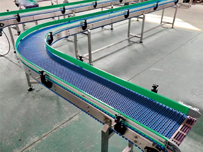 輸送平穩、布局靈活,可以在一條輸送線上完成水平、傾斜和轉彎輸送;可承載較大的載荷,設備結構簡單,清潔維護方便;能滿足食品、飲料行業對衛生的要求。