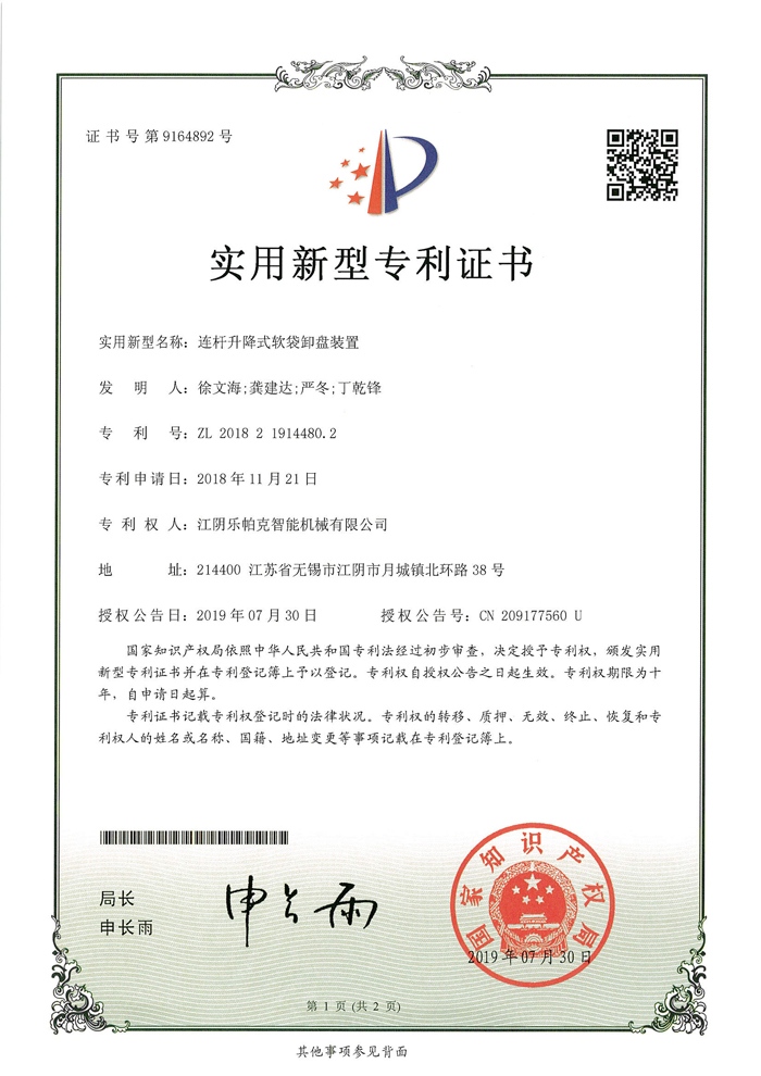 連桿升降式軟袋裝卸盤裝置